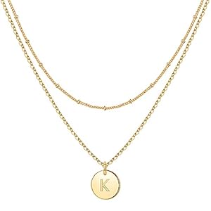 IEFWELL Initial Necklaces for Women, Gold White Gold Rose Gold Double Side Engraved Hammered Coin Necklaces for Women Initial Necklace Layered Initial Necklaces for Women Teen Girl Gifts Jewelry