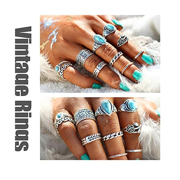 ❤Material❤ These stacked rings use alloy materials, silver plated, high polished, it’s comfortable to wear, don’t worry about harm your fingers. With Bohemian style, vintage design, crystal, fashion carved, it is worth buying. They will make your fingers look more elongate, more beautiful. The rings of various designs can be randomly combined. It makes you very personal.