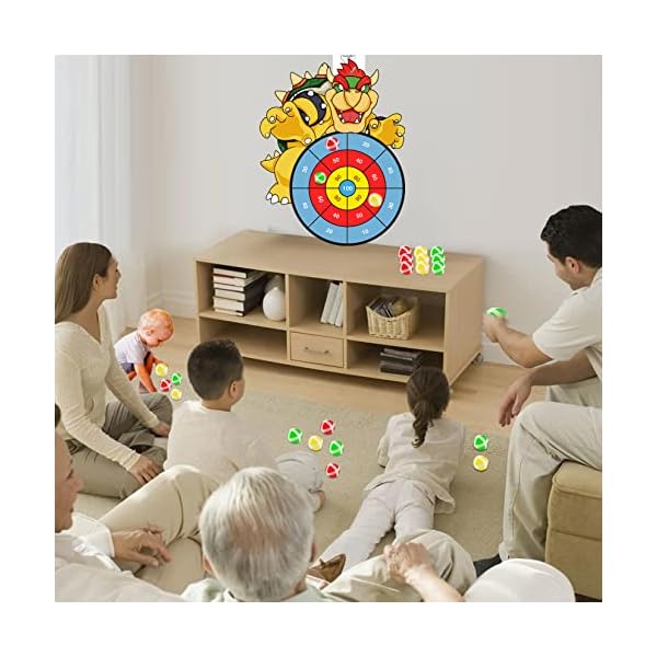 *Great Gift:Mario dart board diameter is 19.2 inches, large size means a higher hit rate, vwhich is more interesting for children or dartboard play beginners. Package includes: 1 large board, 1 sticky hook,12 sticky balls (3 colors). With these rich accessories, vyou can enjoy the fun with more players.