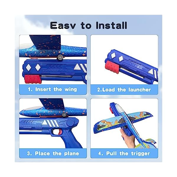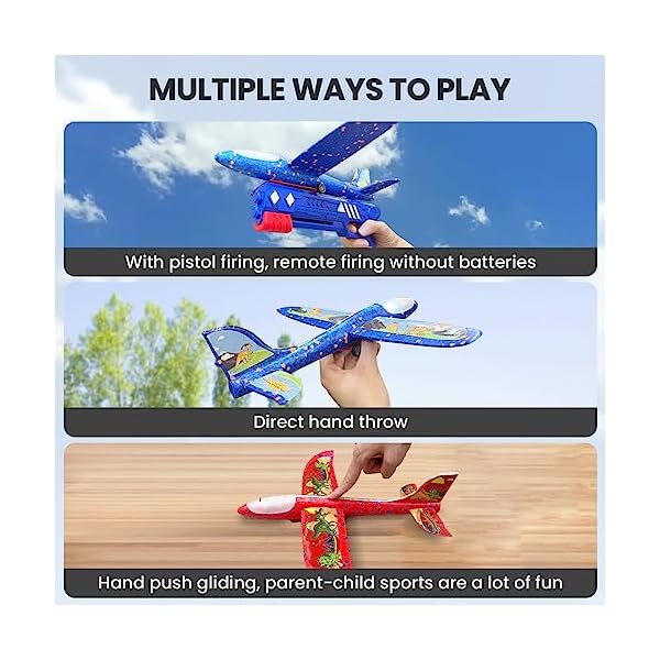 Easy to install: These outdoor flying toys are easy to disassemble or assemble, push and pull the load, put the aircraft in the firing position and adjust, press the trigger, and let the aircraft glide. These outdoor flying toys are easy to disassemble or assemble. In the process of learning how to throw and control airplane toys, children can stimulate their DIY interests and skills, improve hand-eye combination, coordination, observation and orientation and hands-on skills, in addition, they will stay away from the computer, TV, play in the playroom or outside for hours.