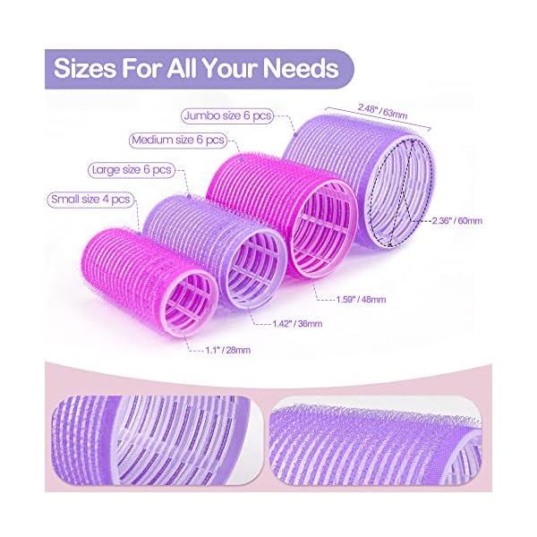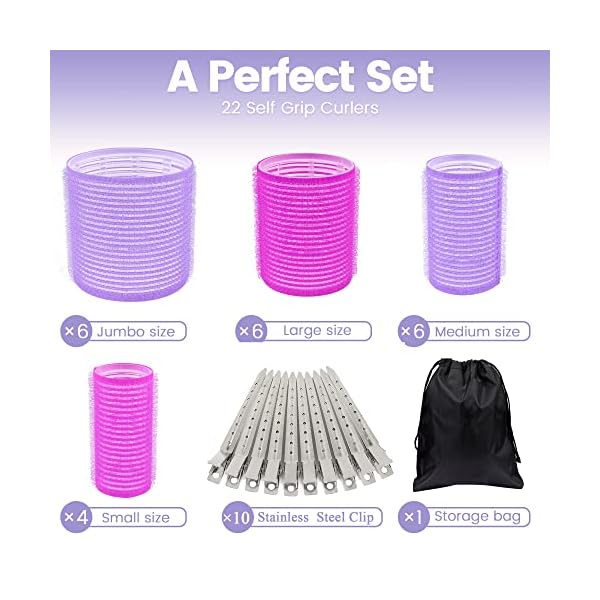 【A Great Value Set】The set contains 1 storage bag, 12 prong clips and 22 hair Curlers(six 2.36-inch jumbo rollers + six 1.59-inch large rollers + six 1.42-inch miduim rollers + four 1.1-inch small rollers).