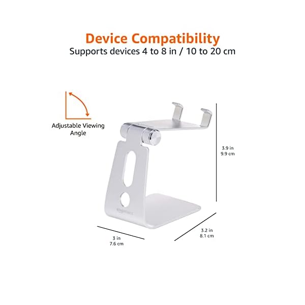 Amazon Basics Adjustable Aluminum Cell Phone Desk Stand for iPhone and Android, Silver