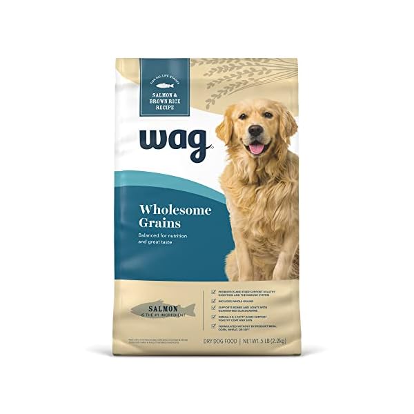 Amazon Brand – Wag Dry Dog Food, Salmon and Brown Rice, 5 lb Bag (Packaging May Vary)