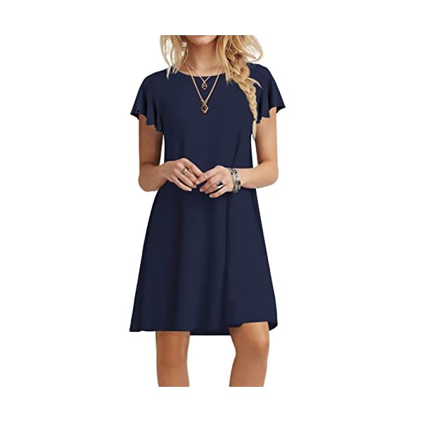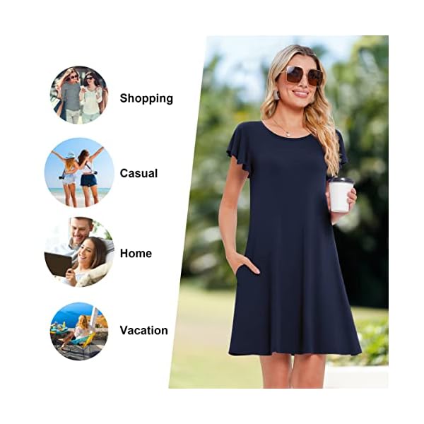【Features】 Casual style, Short sleeve, Crew neck, Flowy dress, Comfortable to wear. This casual dress is above the knees and long enough that you wouldn’t need to wear leggings with it. It is easy to put on or put off. It is suitable for all occasions!