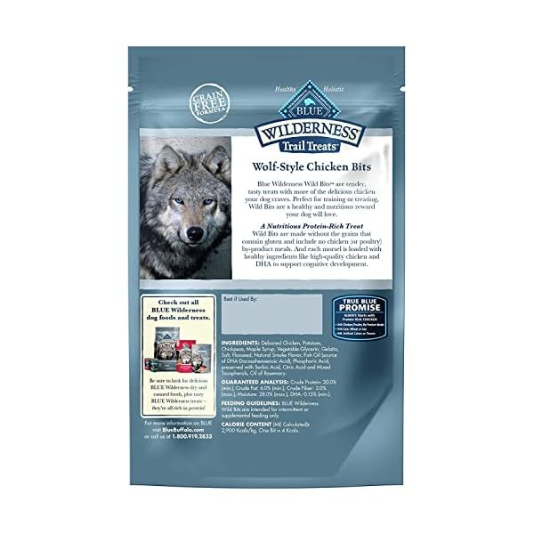 PACKED WITH REAL CHICKEN: Made with more of the delicious chicken your dog loves, BLUE Wilderness Wild Bits are the soft-moist and meaty treat made to satisfy their wild side