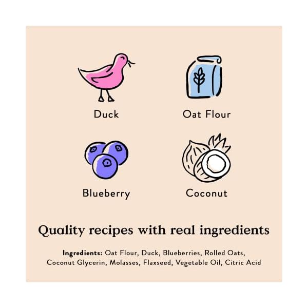 Perfect for Everyday Treating: With just 5 ingredients (like oat flour, duck, bluberries and rolled oats!) and only 14 calories per treat, you can feel good treating your favorite pup to this yummy recipe.
