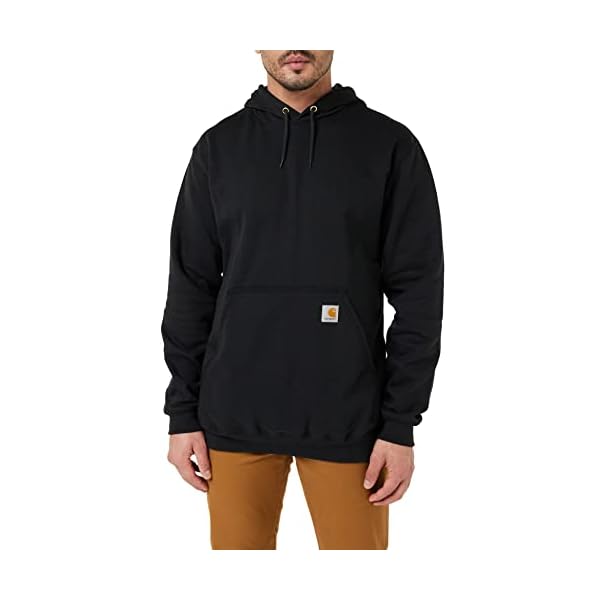 Made of 50% cotton/50% polyester fabric, carhartt’s midweight hooded pullover sweatshirt works well when the weather turns cool. Comfort is enhanced with its attached hood with draw-cord closure. Front hand-warmer pockets are standard, as are its rib-knit cuffs and waist band that keep out the cold and seal in the warmth. Charcoal heather fiber content is 55% cotton / 45% polyester. Heather gray fiber content is 70% cotton / 30% polyester.