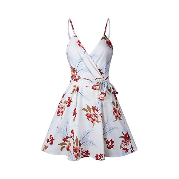 CASURESS Women Dress Summer V Neck Mini Floral Print Swing Dress Sleeveless Spaghetti Strap Skater Dresses with Belt