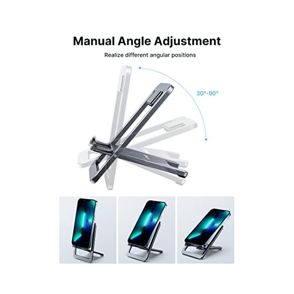 Cell Phone Stand, JSAUX Foldable Aluminum Adjustable Phone Holder for Desk Portable Travel Holder Office Desk Accessories Compatible for iPhone 14 13 12 11 Pro Max X Xr Samsung S22 S21 A53 Switch Grey