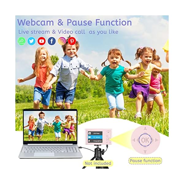 【16X Digital Zoom & 2.4″ IPS Screen Vlogging Camera】NIKICAM kids camera supports 16x digital zoom, You can zoom in or zoom out the subject by pressing the W/T button while recording video and taking still images. The youtube camera for kids girls boys adults also has a pause function, you can press the “OK button” to pause when recording or playing a video. Designed with 2.4″IPS screen, which can present more natural and colorful images, and it’s also a good protection for kids’ eyes.