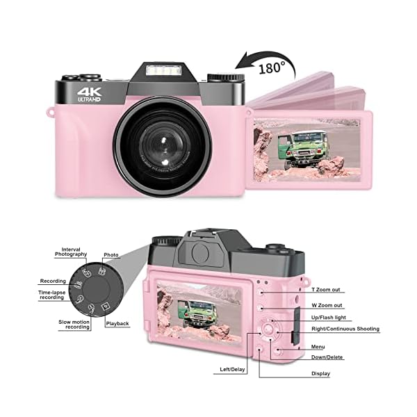 📸【Digital Camera with Wide Angle Lens & Macro Lens】The 4K camera equipped the camera with a professional detachable 52mm wide angle lens with macro lens, so the camera is great for capturing wide horizons easily, and macro lenses capture the diversity of the tiny world. Sharp 4K photos can be ruled out with manual focus. With a knob on the top of the camera, you can switch between photos, video, time-lapse photography and other features.
