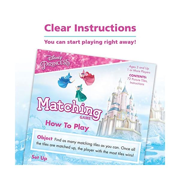 What you get – Disney Princess matching game comes with 72 tiles and instructions.