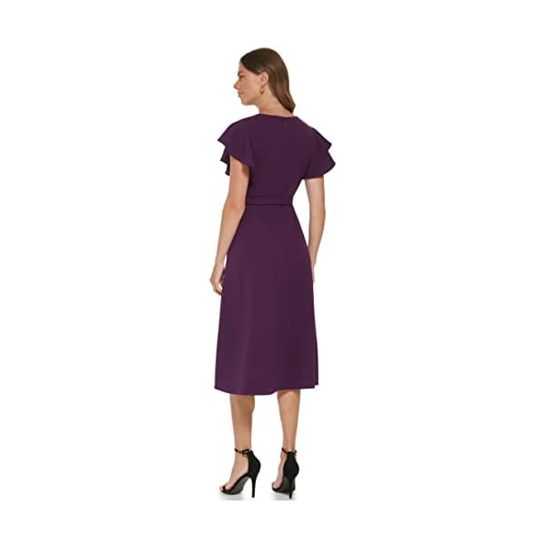 Features: Light scuba crepe, faux wrap dress, flutter sleeve