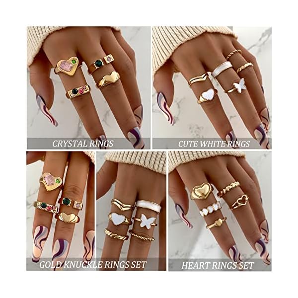 ✿GOLD KNUCKLE RING SET✿You will get 70 pcs knuckle rings with a combination of various styles such as heart ring, snake ring, butterfly ring, twist ring and crystal-set.It will be a versatile accessory that can be used with many different styles of clothing to attend different occasions and make you look more attractive.
