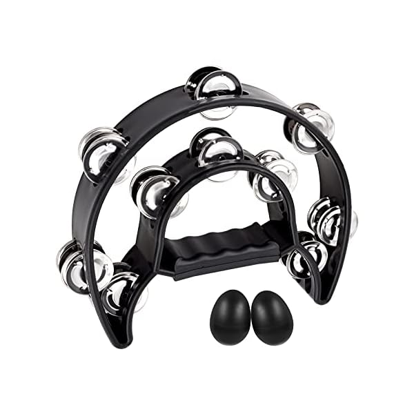 High-quality Materials- Package included: Tambourine X 1, Egg shakers X 2. This EASTROCK double-row tambourine is made of high-quality environmentally friendly ABS material, which is strong and durable. The bell is made of stainless steel, waterproof, wear-resistant and drop-proof. It can produce a crisp and pleasant sound