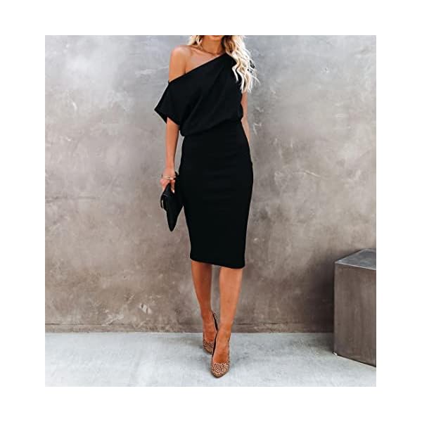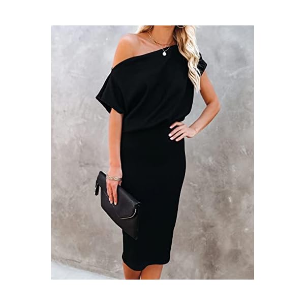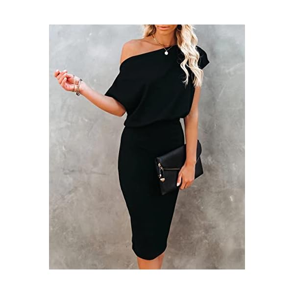 ✿ Womens Sexy Off Shoulder Dress Features With Elastic Waist, Off the shoulder, Off shoulder dresses, Boat neckline, Short Sleeves, One shoulder, Below Knee Length, Fitted Dress, pull-on closure, slim, Wrap Dress, Sexy Dresses, work office Bodycon Dresses