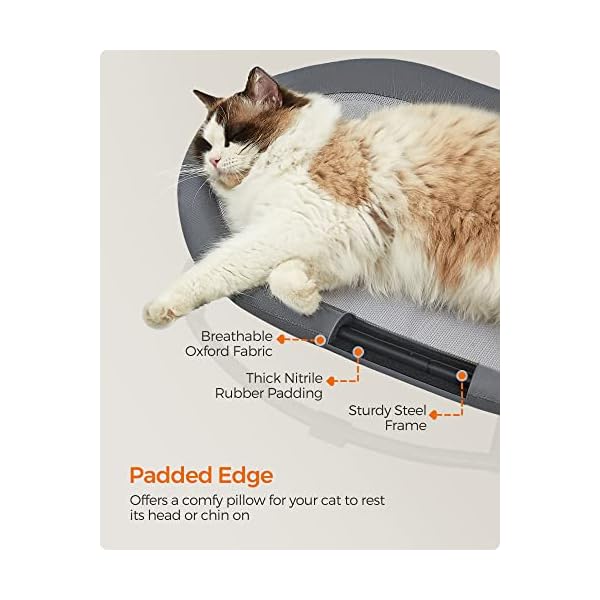[Comfortable and Breathable] With the padded edge, your cat can comfortably rest their heads on the sides. The dense synthetic mesh fabric is breathable, so they’ll stay cool in the summer. It also helps prevent stuck claws