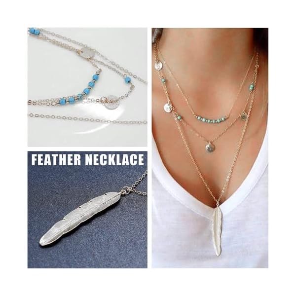 FINREZIO 12 PCS Gold Plated Layered Necklace for Women Girls Sexy Long Choker Chain Y Necklace Bar Feather Pendent Necklace Sets