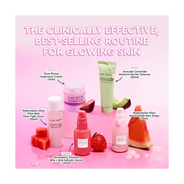 Glow Recipe – Fruit Babies Bestsellers Kit – Mini Travel Size Beauty Essentials – Avocado Foam Cleanser, Niacinamide Dew Drops Serum, Pore-Tight Toner, Salicylic Serum, Hyaluronic Acid Cream (5 Count)