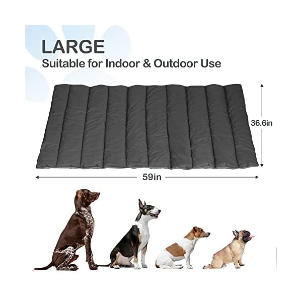 Durable and Large Size: This dog bed is 36”W x59”L and is made of grip-resistant Oxford cloth and filled with soft and breathable pp cotton to ensure the comfort and cooling of all pets. Whether it is a small dog or a large dog can relax more easily and sleep better. Mat is durable with refined stitching, scratch resistant and claw resistant, but it is not recommended for excessive chewers.
