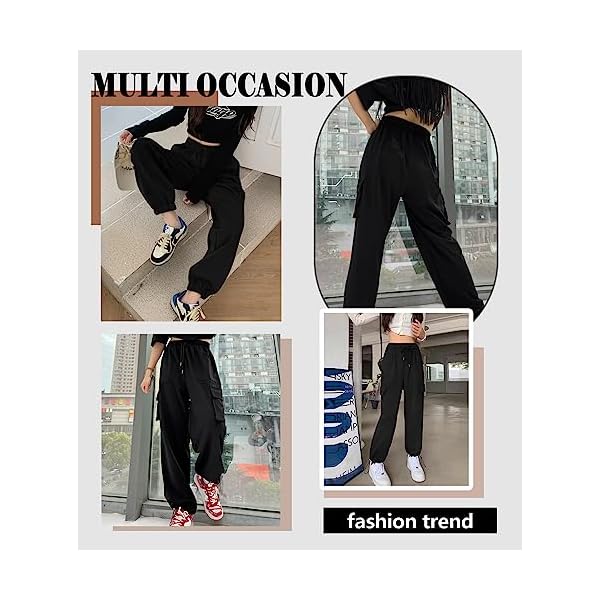 {Convenient Side Pockets}-These Womens joggers have two right Angle pockets and two large side pockets ,it is enough for storing your phone, cash, keys, credit card, etc. It will help you free your hand while you are doing exercising.You can easily store your phone, and wallet without worrying about them falling out.These High-waisted cargo pants for women can be matched with a variety of clothing and shoes at all kinds of different workplaces.