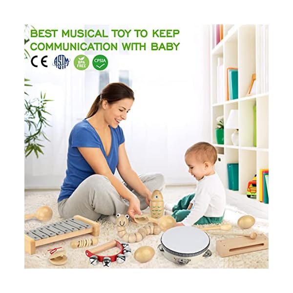 ♫【Good tactility and 100% natural wood for safe use】 To avoid it hurting baby when playing, this wooden music toy was no harmful water paint or chemical smell.A strict quality control was used to promise a extreme safe playing environment for kids.