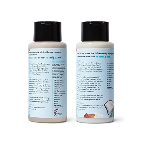 OUR HAIR CARE PROMISE: Love Beauty and Planet Coconut Water & Mimosa Flower Volumizing Shampoo and Conditioner duo gently cleanses and detangles hair with a lightweight formula