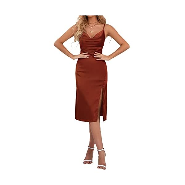 LYANER Women’s Satin Drape Cowl Neck Sleeveless Strappy Cami Split Slit Party Midi Dress