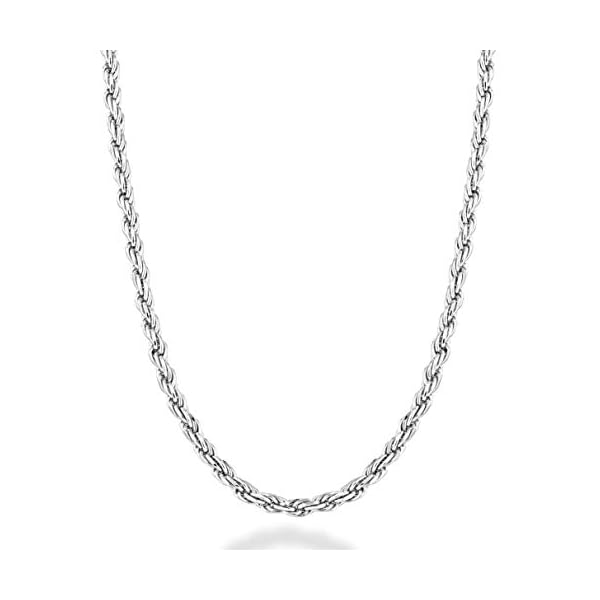 MODERN CLASSIC – Add a stylish touch to a basic look with this elegant 925 sterling silver twisted diamond-cut rope chain with a rich perfect shine. It is strong and durable and just the right size, not too thin, not too thick for an everyday comfortable fit. Crafted by Italian artisans, the chain is designed to be worn alone with casual or dressy outfits for a polished look, with a pendant for a personal statement or layered with other chains for an on-trend vibe.