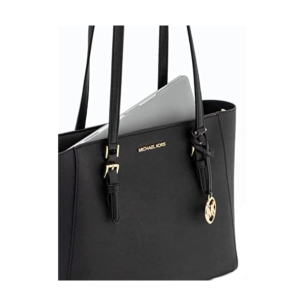 Tote:13.5” bottom 15.5” top L X 10.75”H X 5.25”D Handle drop: 10.5”(Inches) Features: Model: Charlotte Large Tote 3 in 1 Tote Style# 35R3GCFT3T Material: Saffiano Leather A removable crossbody (9.8 in x 6 in)with zipper, which can also be worn as a shoulder bag A removable crossbody with flap and snap button closure which can also be worn as a shoulder bag (8.2 in x 5.1 in ) Outside: Saffiano leather Zipper A detachable and adjustable leather shoulder strap (19-22 in)