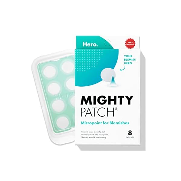 Mighty Patch Micropoint for Blemishes from Hero Cosmetics – Hydrocolloid Acne Spot Treatment Patch for Early Stage Zits and Hidden Pimples, 395 Proprietary Micropoints (8 Patches)