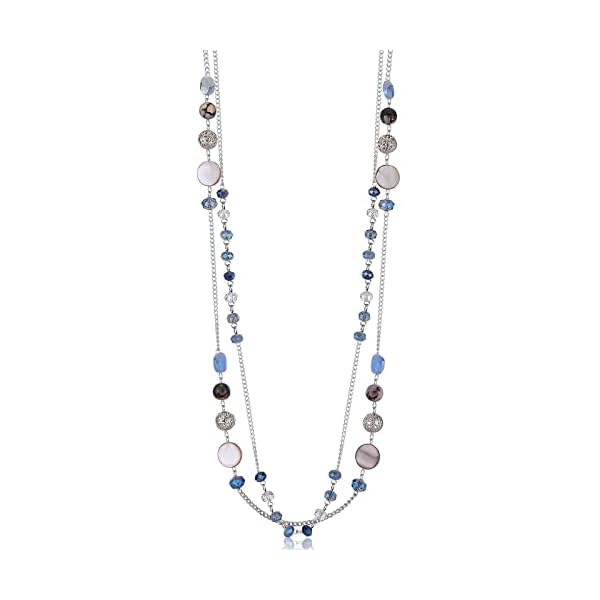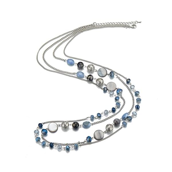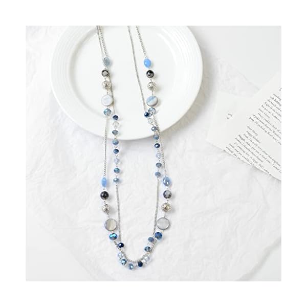 Noessla Layered Long Necklaces for Women Crystal Beaded Statement Necklace Sweater Silver Chain with Gifts Box Jewelry