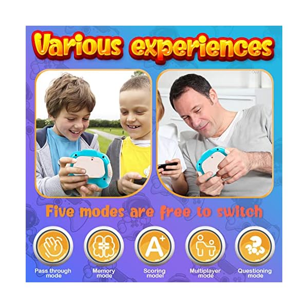 Discover ORDTBY Handheld Game Console – The ultimate gaming experience with 5 modes: Breakthrough Mode/Memory Mode – tackle 30 adjustable levels/remember and swiftly eliminate lit bubbles to advance. Scoring Mode and Multiplayer Mode – aim for a perfect 100 score and dominate level challenges. Quick Questions: Boost math skills with random addition/subtraction (up to 10 digits). Enhance speed, memory, and teamwork. Get ready for endless fun!