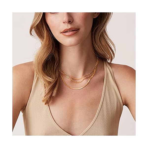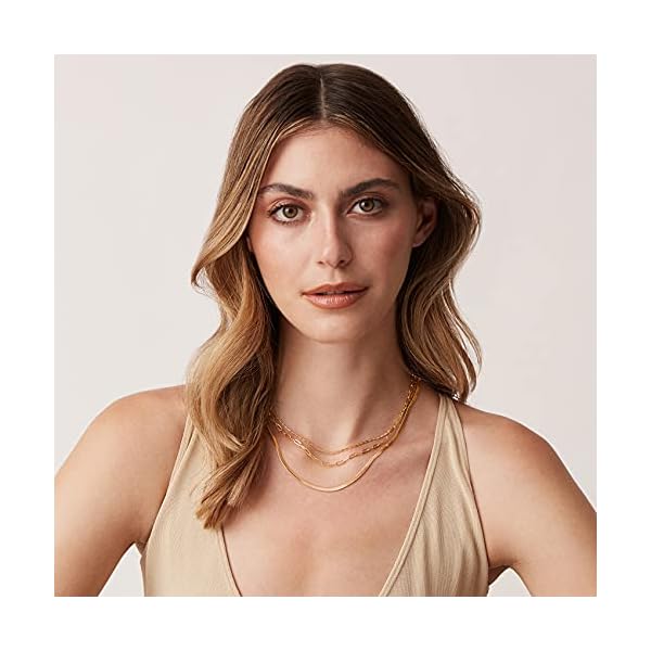 PAVOI 14K Gold Plated Dainty Layering Necklaces for Women | Snake Chain, Curb Link, Paperclip Layered Chains | Trendy Layering Necklace
