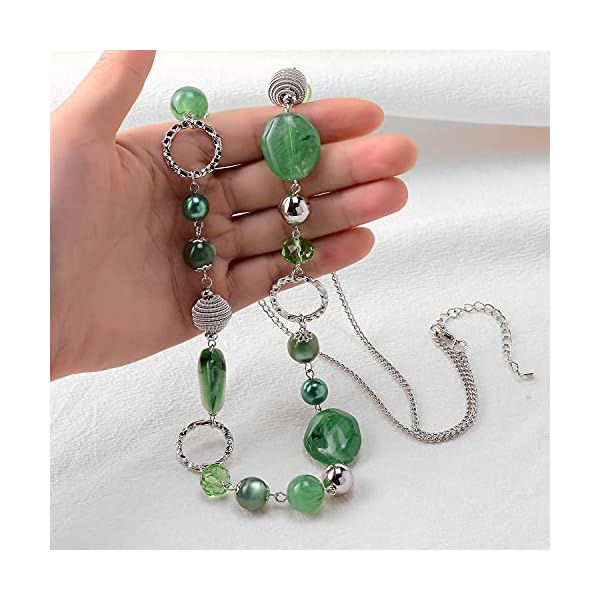 👑SAFE ENVIRONMENTAL MATERIALS: The long necklace are made of silver chain, resin beads and glass crystal beads what is natural environmental material, no stimulation to the skin, not allergies, lead-free, nickel-free and cadmium free. The safe product gives you a better wearing experience