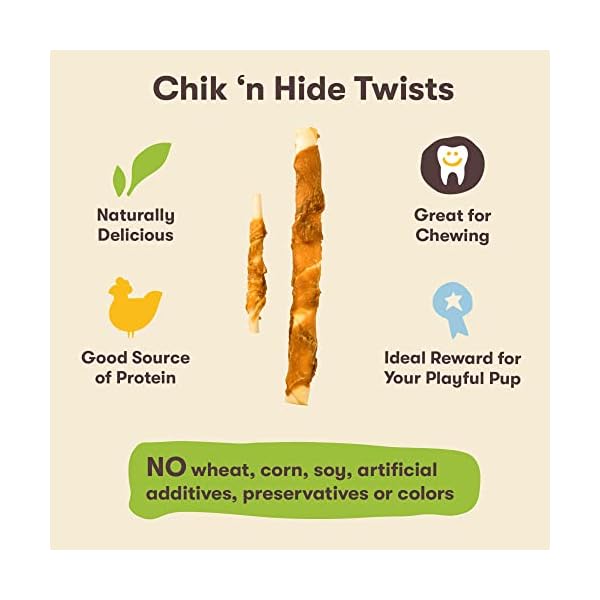 healthy snack – chicken rawhide twists are the perfect snack-size; making each treat an ideal reward for pups of all shapes. it’s a bite of goodness for your best bud! for your dog’s safety, observation is recommended when giving treats or chews.