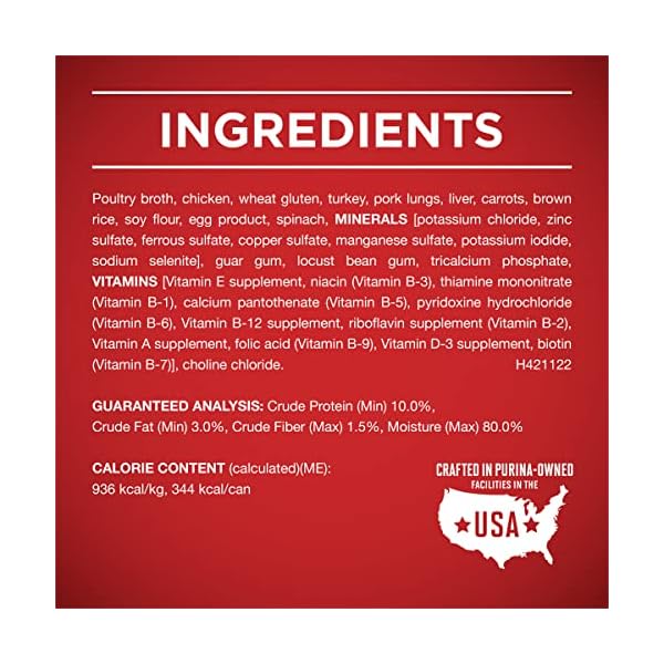 Deliver delicious chicken flavor to your dog’s bowl with Purina ONE Natural Tender Cuts Chicken and Brown Rice Entree in Gravy adult wet dog food with added vitamins, minerals and nutrients. Real chicken gives him the poultry he loves, and brown rice balances out the dog food recipe for a great-tasting finish. The rich, savory gravy adds moisture and flavor, giving him a reason to lick his bowl clean, and tender, meaty morsels in this high protein dog food offer a tempting texture. Plus, each serving of this wet food for dogs contains high protein to support his strong muscles. We make this canned dog food formula with 0 percent fillers and no poultry by-products, so every high-quality ingredient has a purpose. This adult dog food formula provides 100 percent complete and balanced nutrition to support his whole-body health. Our Purina ONE Natural Tender Cuts lets you feel good about the dog food cans you serve to your canine companion at mealtime each day.