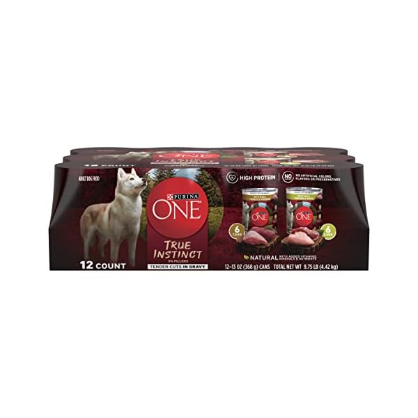 Purina ONE True Instinct Tender Cuts in Gravy With Real Turkey and Venison, and With Real Chicken and Duck High Protein Wet Dog Food Variety Pack – (12) 13 Oz. Cans