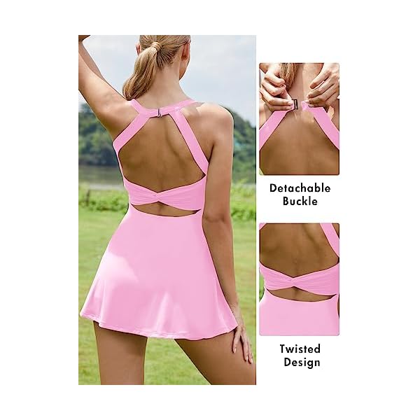 Rigolla Tennis Dress with Built-in Bra & Shorts Backless Cut Out Twisted Side Pocket 2-in-1 Barre Ballet Dance Dress