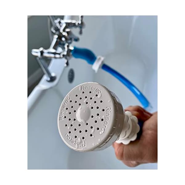 Rinseroo Bathtub Faucet Sprayer Attachment. Slip-On Dog Shower Hose Adapter. No-Install Pet Showerhead Attaches to Tub Spout 5 Foot Hose