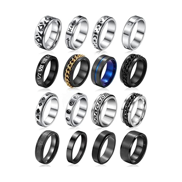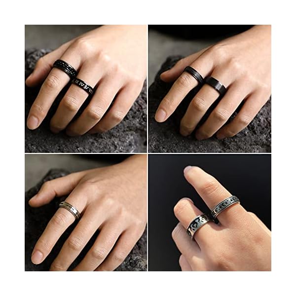 Stainless Steel Fidget Rings for Men, Sliver Fidget Rings for Anxiety for Women, Cool Spinner Ring Set, Black Mens Wedding Band Ring Pack