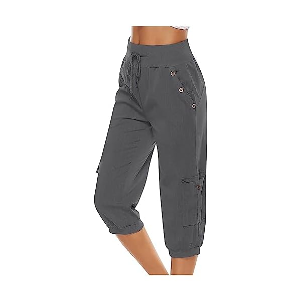 Sukilimiy Womens Capri Pants for Summer Drawstring Cargo Pants Elastic Waist Casual Capri Joggers Loose Straight Trousers