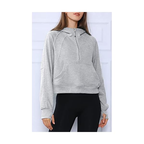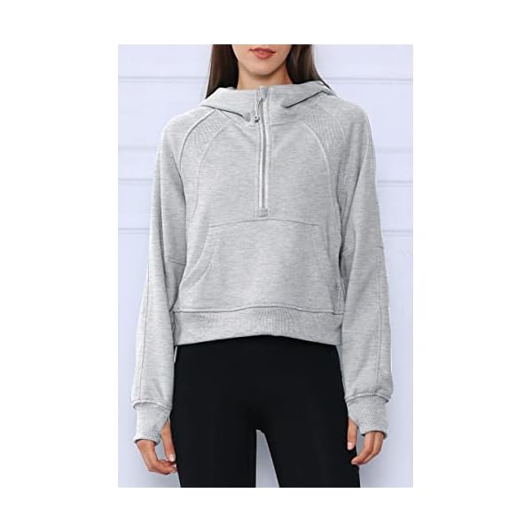 ★Design: Athletic workout hoodies,women pullover sweatshirt,drop shoulder collar, long sleeve with thumb holes, half zip collar, solid color, cropped length,fleece lined, relaxed fit,crop top, winter outfits for women, fashion and casual style, it’s thick and really soft inside, standard size, a sweatshirt that goes with everything.
