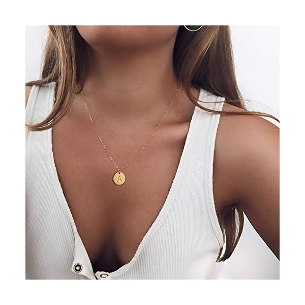 Valloey Rover Gold Initial Pendant Necklace, 14K Gold Plated Disc Double Side Engraved 16.5″ Adjustable Dainty Personalized Alphabet Letter Pendant Handmade Cute Tiny Necklaces Jewelry Gift for Women