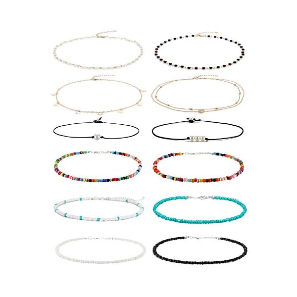 Beads Choker Necklace Set: One Package Includes 12 Pieces Seed Bead Choker.Different Styles Come In a Set,Providing More Choices To Make You Shine Even More This Summer.Economical Bead Choker Set,Deserve To Purchase.
